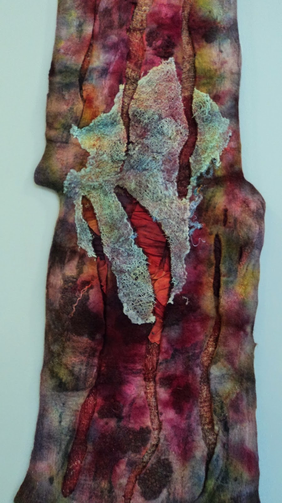 A segment of 'Harmony' by Maria Dunne which consists of merino wool and silk fibres, hand dyed and wet felted.